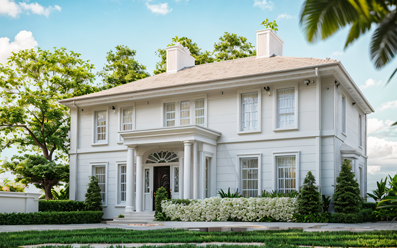 Ngôi nhà thuộc phong cách thuộc địa với đặc điểm đối xứng