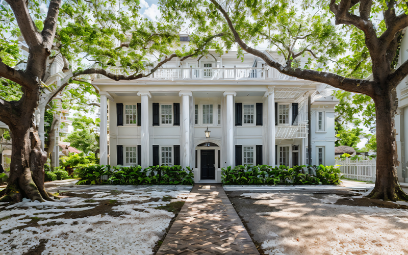 • Nhà có phong cách thuộc địa thường cao từ 2 đến 3 tầng, với tường xây từ gỗ, gạch hoặc đá.
