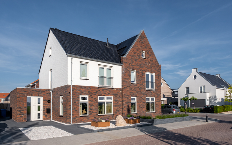 Ngôi nhà được xây theo kiến trúc thuộc địa Hà Lan với mái gambrel